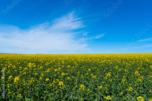 Fototapeta premium Ukraine. Drone. Aerial view. The yellow rape field.