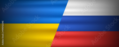 © alex83m, Naklejka premium Ukraine vs Russia national flag. Conflict between Ukraine and Russia. Vector illustration.