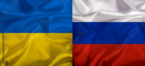 © weyo, Naklejka premium Ukrainian and Russian flag - illustration