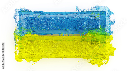 © LaCozza, Obraz premium Ukrainian flag formed by colorful fluids, metaphor of resistance and strength to the Russian invasion, strength for peace, 3d rendering, 3d illustration