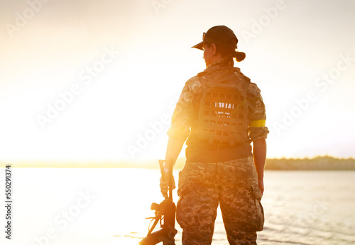 © alimyakubov, Obraz premium Ukrainian military woman with the gun in her hands