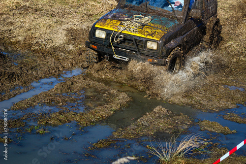 Obraz premium Ukrainian offroad competition in the city of Kamyanets Podilsky. Swamp and...
