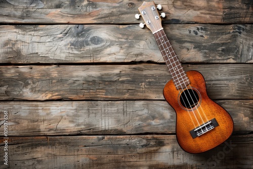 © Tetiana, Fototapeta premium Ukulele on wooden surface
