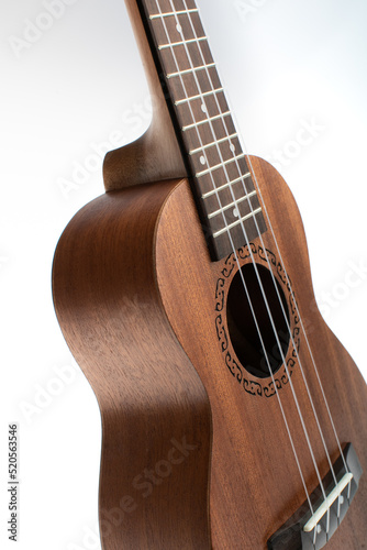 Fototapeta premium Ukulele soundboard with strings on white background