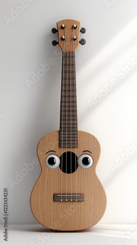 Fototapeta premium Ukulele with googly eyes is making a funny face