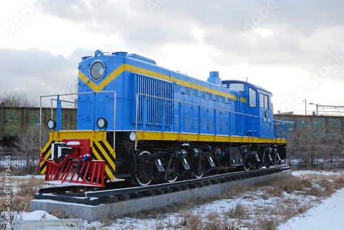 © mors74, Obraz premium Ulaanbaatar, Mongolia-Dec,02 2015: Shunting diesel locomotive, TEM-1. Museum of railway equipment in Ulaanbaatar. Mongolia