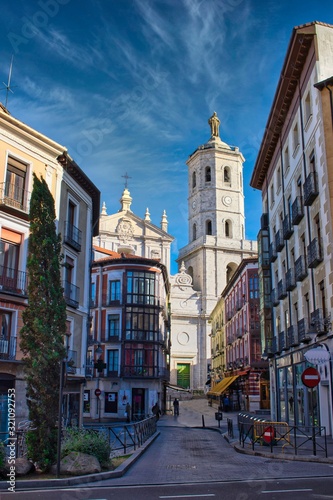 © David Andres, Fototapeta premium Ulica Cascajares i wieża katedry, Valladolid