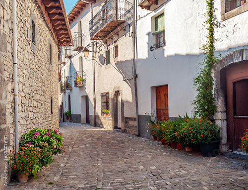© Tomas, Fototapeta premium Ulica wsi Hechos w Pirenejach w słoneczny dzień