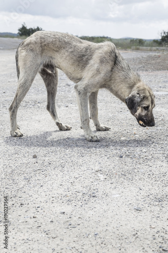 © berna_namoglu, Naklejka premium Uliczny pies karmiący się