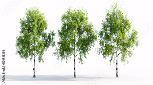 © sajid Pixel, Obraz premium Ulmus and Birch Trees: 3D rendering with transparent background for digital composition and architecture visualization.