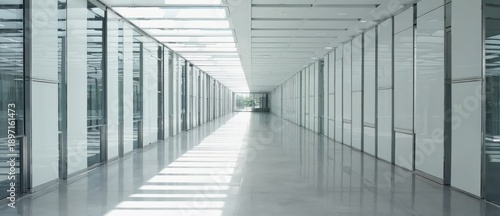Fototapeta premium Ultra-clean near-future corporate architectural interior with precise...