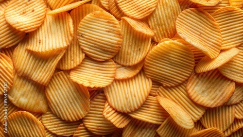 Obraz premium Ultra-crispy potato chips texture close-up for snacking and party foods