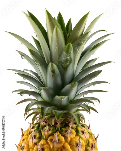 © MdShariful, Fototapeta premium Ultra detailed close up of fresh pineapple top showing crown and fruity texture