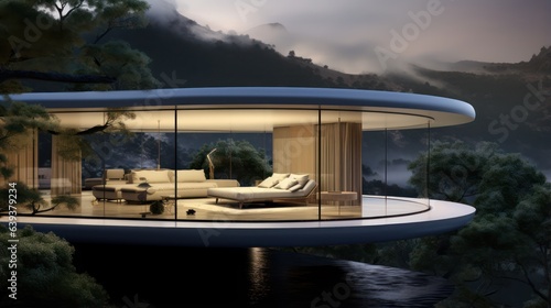 Fototapeta premium Ultra-Modern Futuristic House that Connects a Room to Nature Overlooking a...