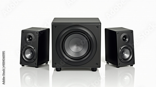 Obraz premium Ultra modern sound speakers and subwoofer on white background
