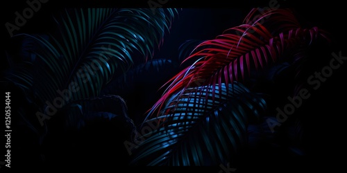 Fototapeta premium Ultra-modern tropical leaves composition with neon tones, bringing futuristic...