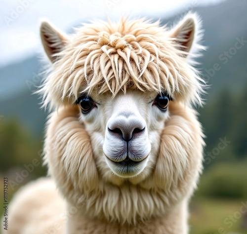 Fototapeta premium Ultra-Realistic Close-Up Portrait of a Fluffy Alpaca