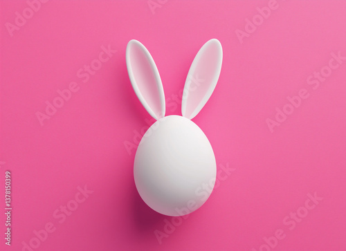 © sunaiart, Obraz premium Ultra-Realistic Easter Egg with Bunny Ears - Vibrant Pink Flat Lay (Minimalist Top View Photo Render)