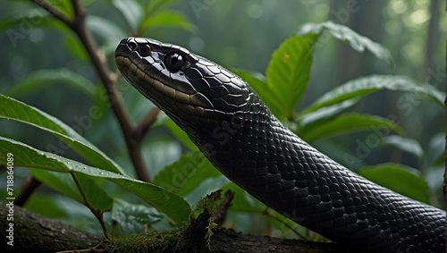 Fototapeta premium Ultra realistic high resolution photo of a vibrant black snake. generative AI