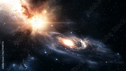 Fototapeta premium Ultra-realistic image of a black hole with swirling light in an accretion disk, set in deep space