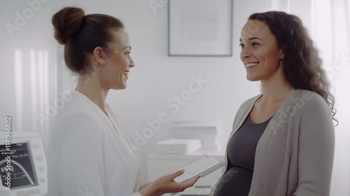 © mirifadapt, Obraz premium ultrasound technician explaining results to a smiling pregnant woman