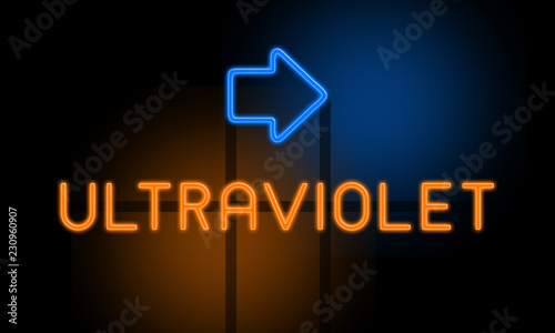 © Hepta, Fototapeta premium Ultraviolet - orange glowing text with an arrow on dark background