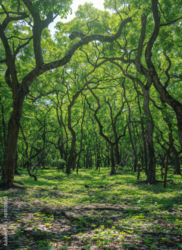 © Novanture, Naklejka premium uma floresta de arvores frondosas created with Generative AI technology