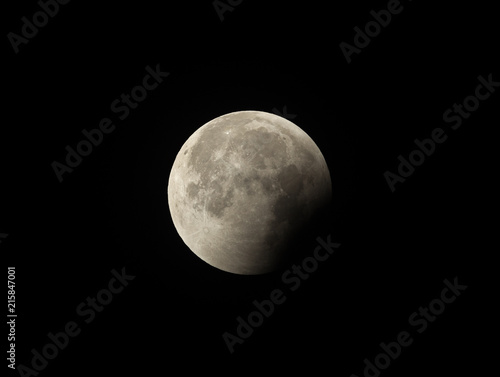 Obraz premium Umbral phase (Partial phase) observed in the later stage of Lunar Eclipse on 27-28 July 2018 at Bahrain