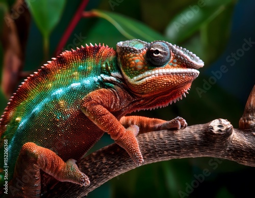 Obraz premium Un camaleón cambiando de color sobre una rama