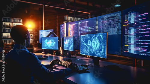 © Gautier Normand, Fototapeta premium Un data analyste en train de travailler la données.