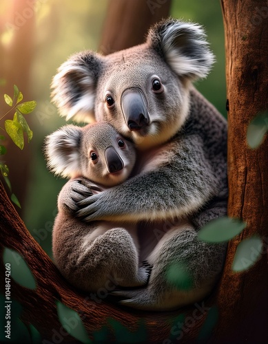 © Argiduna, Naklejka premium Un koala junto a su cría en un arbol