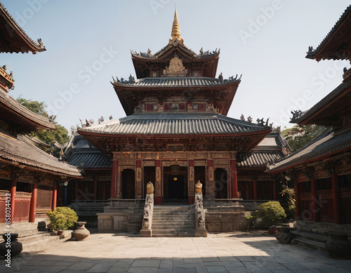 © Nicola, Fototapeta premium Un monastero buddista su una montagna avvolta dalle nuvole.