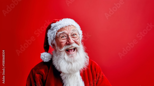 © Fox_Dsign, Naklejka premium un père noël en train de sourire - fond rouge
