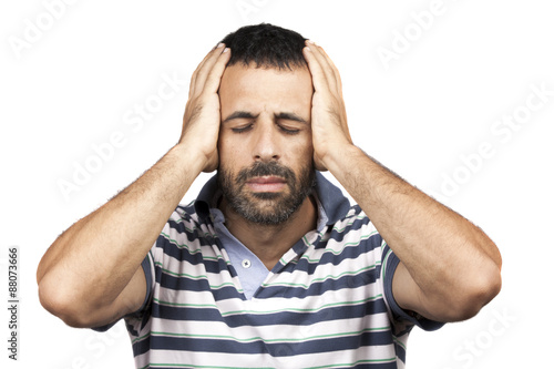 © alex.pin, Naklejka premium Un uomo durante un attacco di mal di testa