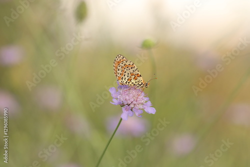 © Simona, Obraz premium una farfalla melitaea al tramonto
