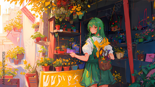© Tyrael, Fototapeta premium Una Niña Haciendo Jardinería en su Invernadero, IA Generativa