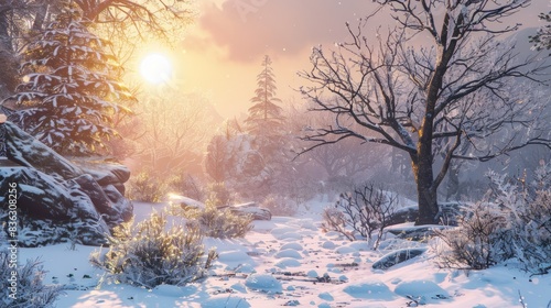 © The 2R Artificiality, Naklejka premium Uncommon snow covered scenery in the morning