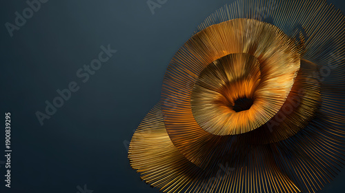 © Quantum Vistas, Obraz premium Unconventional 3d abstract art dynamic golden flower design on dark background close-up view