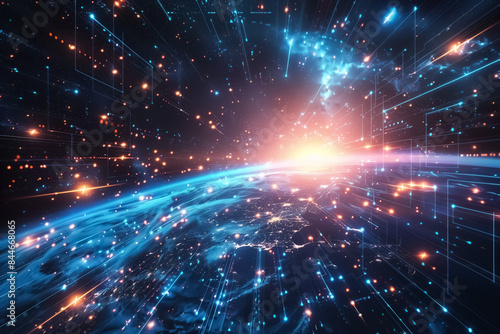 Fototapeta premium Uncover the glowing mysteries of space through a secure digital system