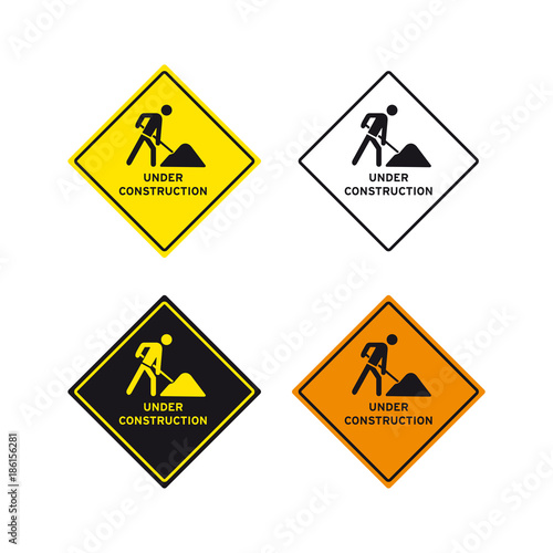 Obraz premium Under construction men at work road sign set
