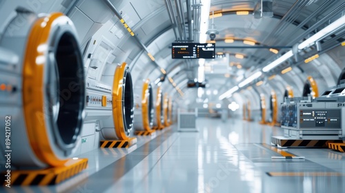 Fototapeta premium Underground facility with high-tech scanning equipment and hidden monitoring...