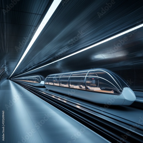 © LIPO@SEXTAO22, Fototapeta premium Underground hyperloop transportation station with sleek, glass-covered tubes