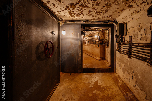 Fototapeta premium Underground military bunker, bomb shelter, protective construction of civil defense