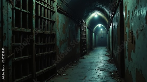 © Jonni78, Obraz premium Underground prison in the castle, rusty bars, dilapidated walls, gothic patterns, dark shadows, cinematic shot