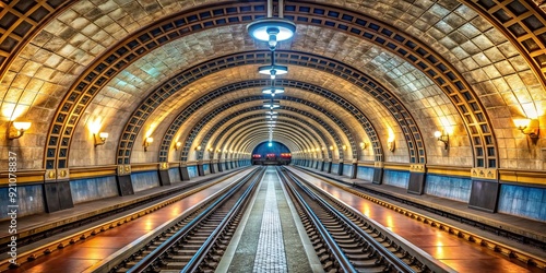 Obraz premium Underground subway tunnel in Kiev, Ukraine, subway, tunnel, transportation,...
