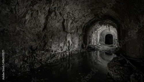 © pngking, Obraz premium Underground tunnel filled with water, safety hazards and maintenance challenges