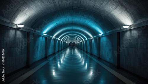 © The 2R Artificiality, Fototapeta premium Underground tunnel with exposed concrete surfaces emphasizing maintenance checks