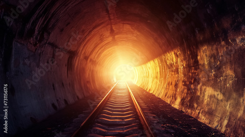 © VisionalMedia, Naklejka premium Underground tunnel with light at end. 3D rendering and illustration. 3d render illustration.
