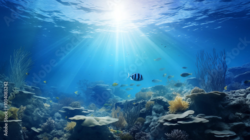 Fototapeta premium Undersea landscape, fish and corals