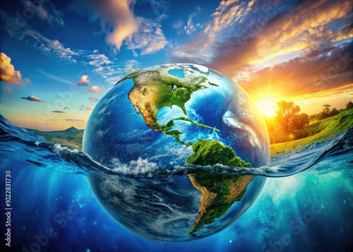 © Arnada, Fototapeta premium Understanding Earth's Composition: The Ratio of Water to Land in Our Planet's Surface Environment